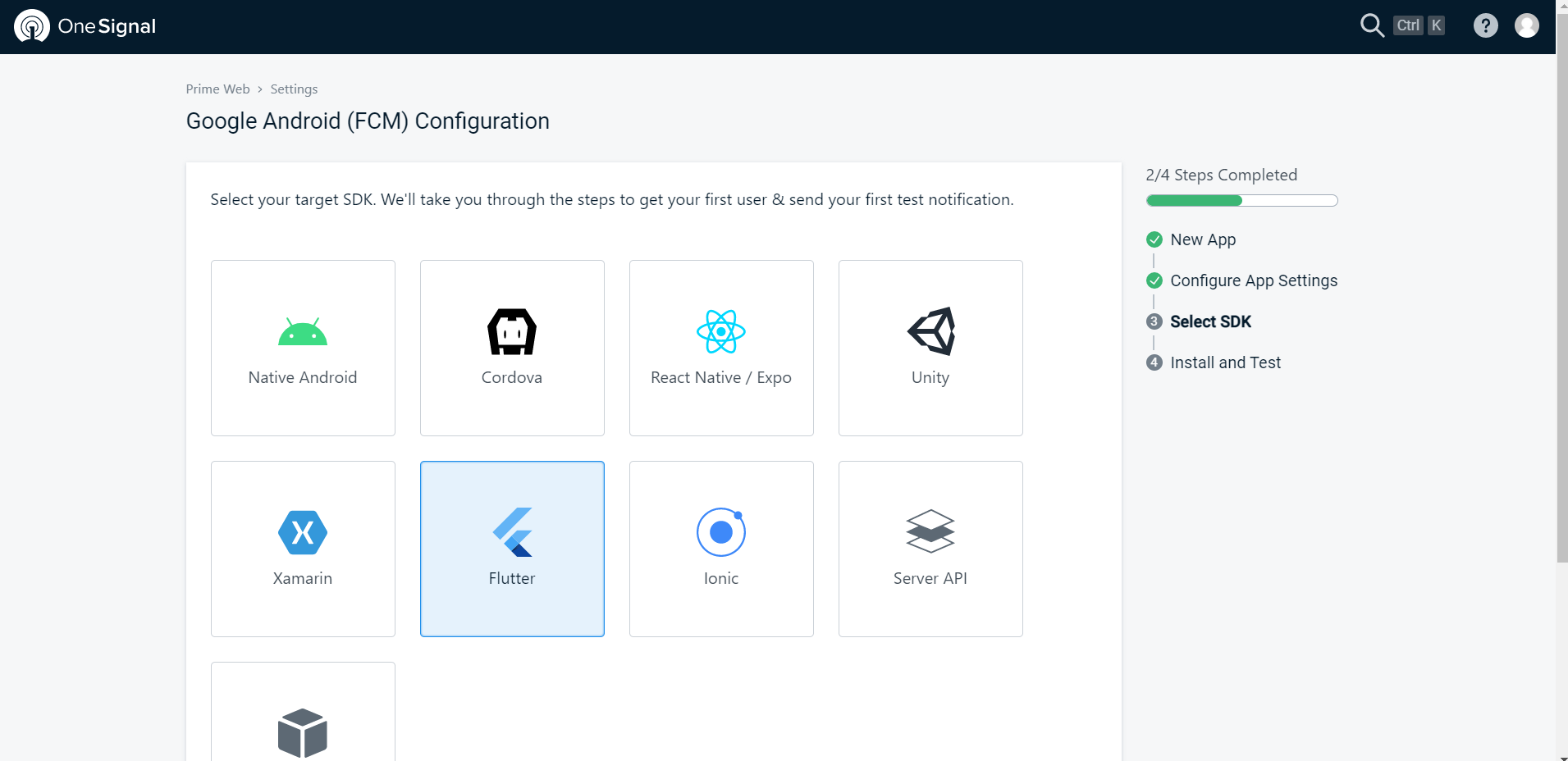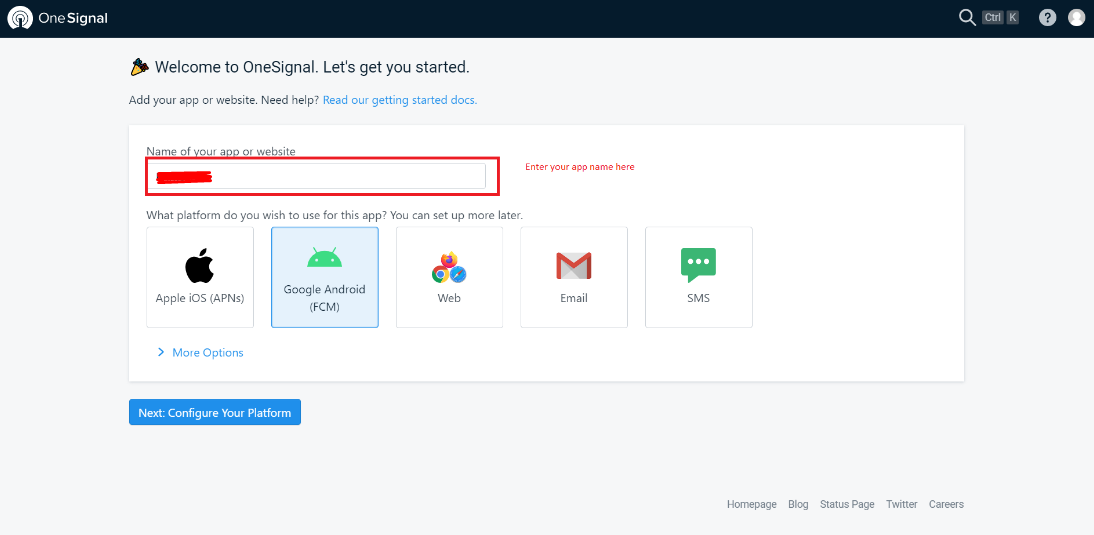- Select one platform configure, for Example(iOS,Android,Web push).