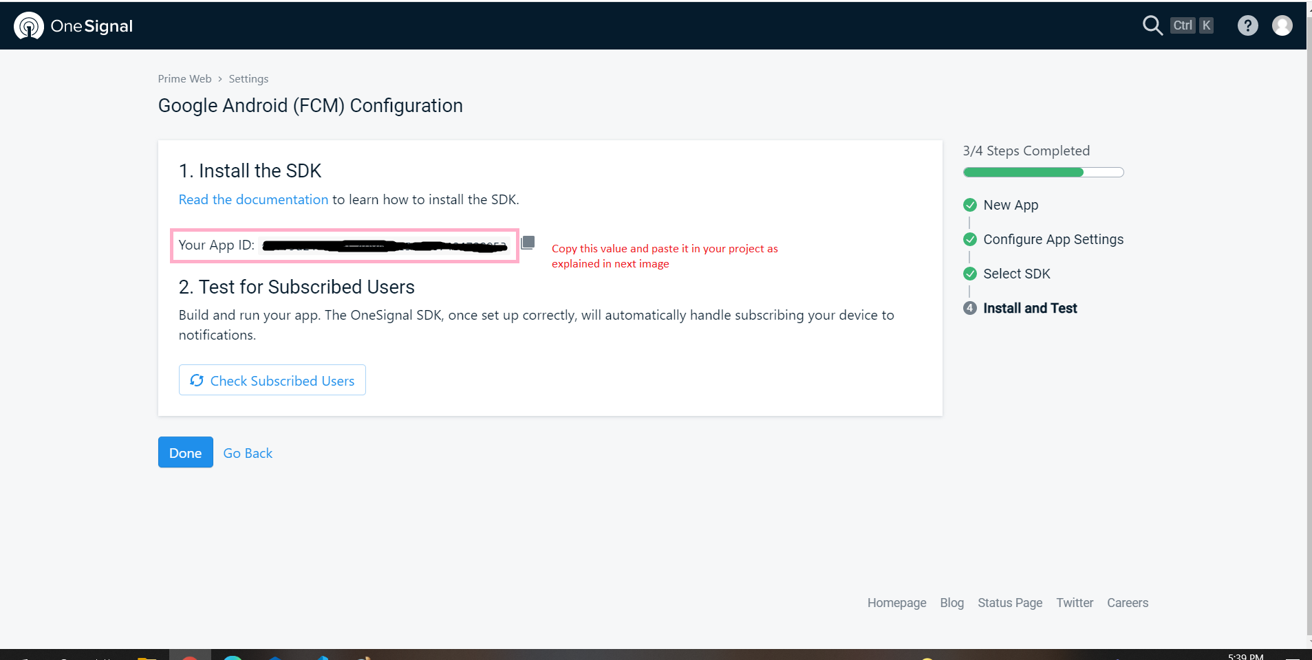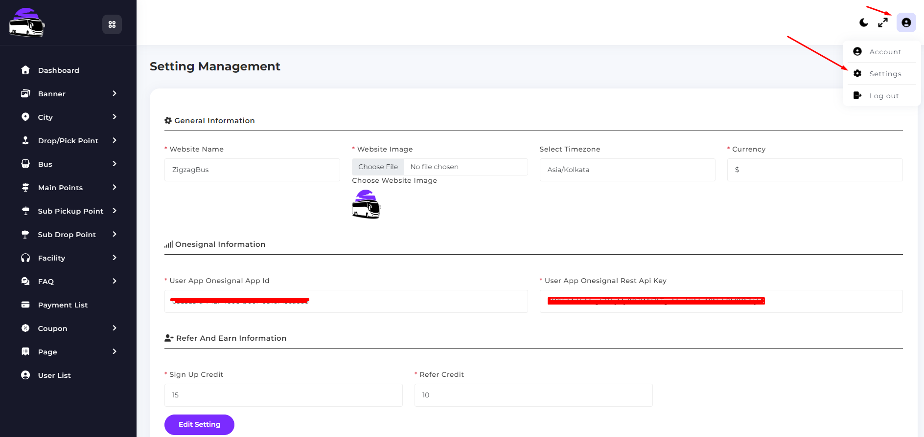 Step 8: Onesignal App ID & Rest Api Key paste it to admin setting tab